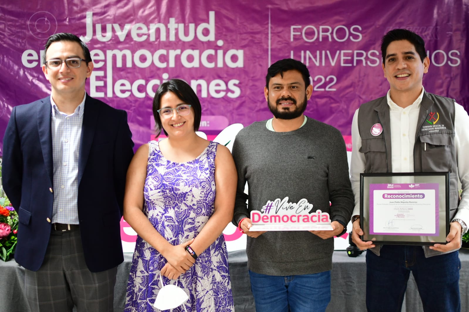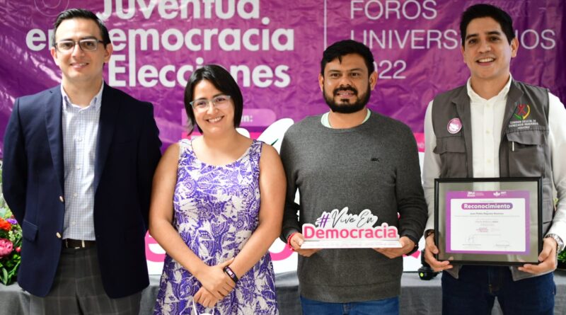 Para concluir le fue entregada la insignia «Vive en Democracia» al ITS de San Andrés Tuxtla, por su compromiso con la juventud en espacios públicos y su invaluable colaboración como sede del cuarto Foro Universitario 2022 “Juventud en Democracia y Elecciones”. (comunicado).