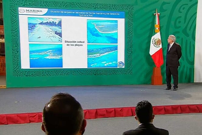 Desde Palacio Nacional, el mandatario calificó como “falsa” la información acerca de que hay sargazo en las playas del Caribe.