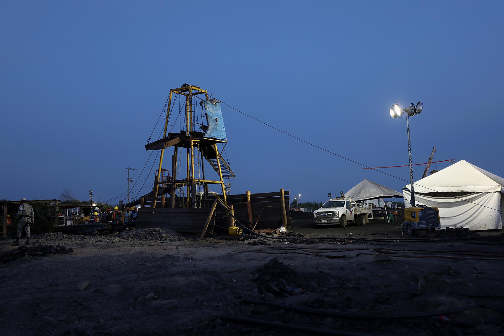 En los tres pozos inundados de la mina, donde se presume que podrían estar los trabajadores, aún quedan tirantes por bombear de hasta 10,2 metros, expuso Velázquez.