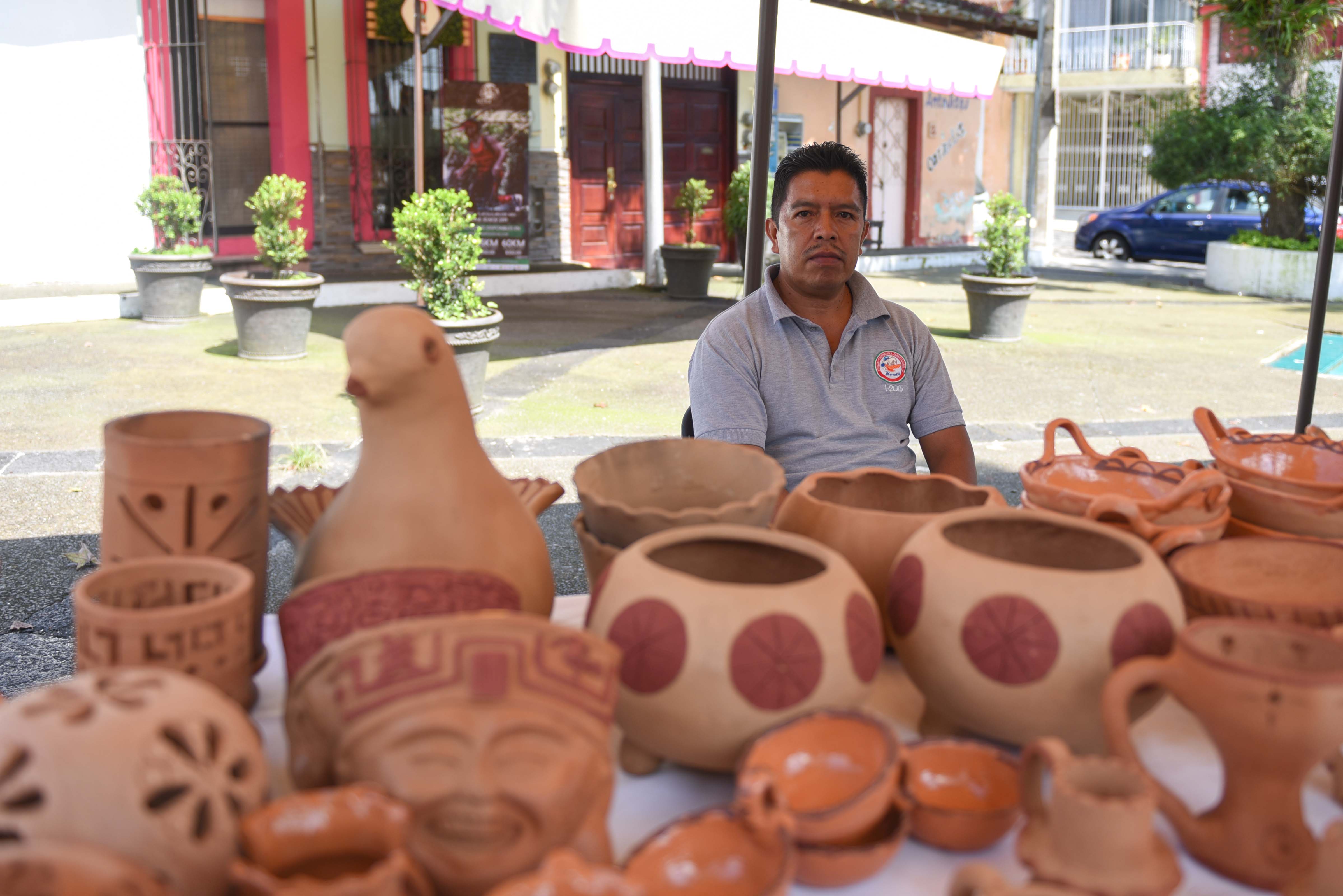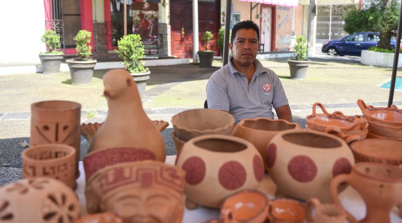 Uno de los expositores, Héctor Alarcón Gómez, viene de la congregación Chiltoyac para vender la alfarería que desde hace 30 años elabora su esposa, y que ahora produce toda su familia. Es la primera vez que sale a un evento y agradeció el espacio, pues ha vendido bien.