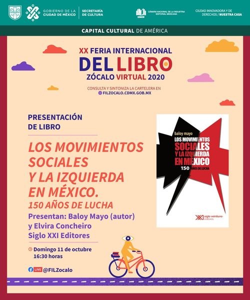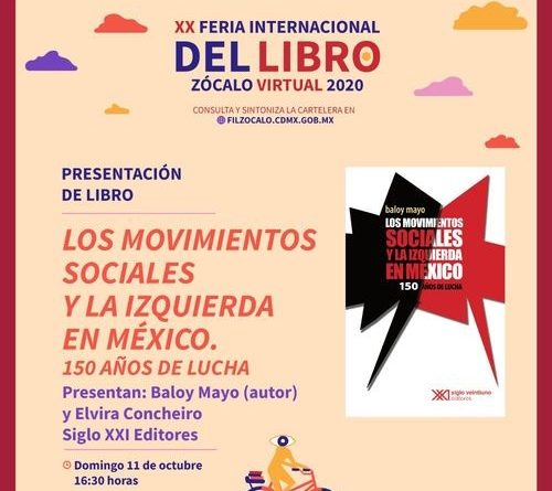 El libro Los movimientos sociales y la izquierda en México, 150 años de lucha (Siglo XXI Editores, 2020), de Baloy Mayo, plantea “las cuestiones candentes de la lucha de clases en el país durante el siglo y medio que abarca el estudio, desde los tiempos del porfiriato hasta 2018, aproximadamente”, expresó el historiador y escritor guerrerense en su presentación en la XX Feria Internacional del Libro Zócalo Virtual. El acto fue moderado por la investigadora, historiadora y militante Elvira Concheiro.