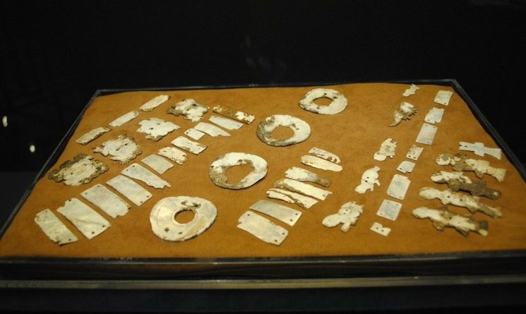 Lourdes Gallardo habló de de la prenda o epnepaniuhqui de Zacatenco, que con sus 2 mil 400 años de antigüedad fue una de las piezas más importantes de la muestra Lujos de nácar. Prendas enconchadas en Tenochtitlan.