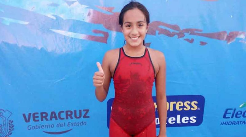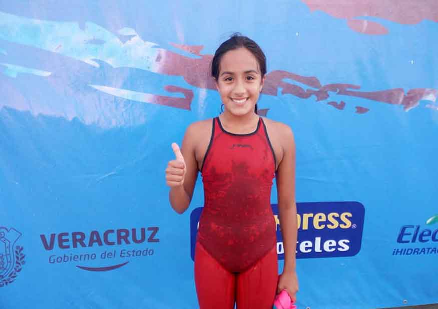 Gran cierre de Diana Paola Gómez Ruiz quien le dio la medalla de oro al Estado de Veracruz en los 200 metros dorso categoría 11-12 años femenil, en el cierre del Campeonato Nacional de Natación,Curso Largo.