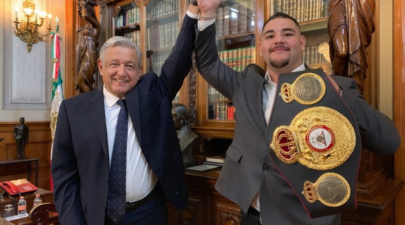 Con su flamante título de campeón mundial de peso completo de la Organización Mundial de Boxeo, la Asociación Mundial de Boxeo, la Organización Internacional de Boxeo y la Federación Mundial de Boxeo, Andy Ruiz se reunió esta mañana con el presidente, Andrés Manuel López Obrador.