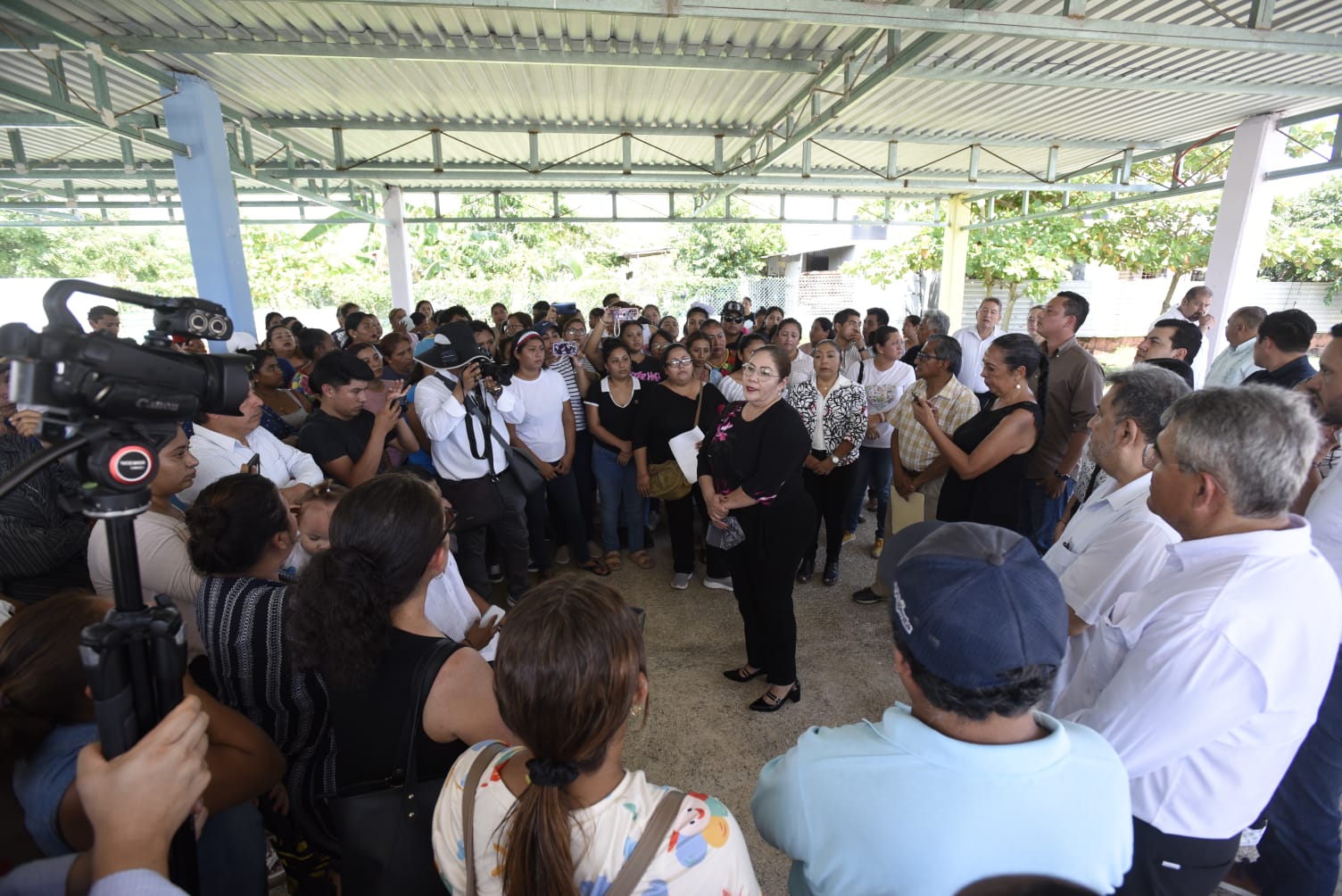 Acompañada del alcalde Amado Cruz Malpica y el diputado Miguel Guillermo Pintos Guillén, dialogó con los inconformes por la designación de una directora, y escuchó las diferentes expresiones que han venido a afectando el calendario escolar de las y los niños que acuden a recibir formación de educación preescolar.