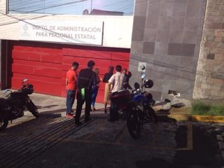 Auto-toma de instalaciones de trabajadores de Oficialía Mayor de la SEV