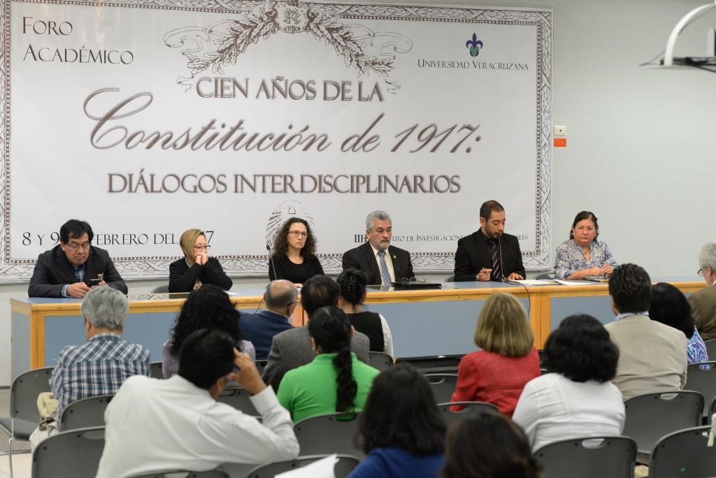 Ahí se analizan momentos frágiles de la Constitución, como sus acuerdos, ambigüedades, incoherencias y exclusiones, mismas que “deben ser problematizadas, y la mirada de los académicos es muy útil para eso”, apuntó.     En representación de la rectora Sara Ladrón de Guevara, el abogado general de la UV, Alberto Islas Reyes, inauguró el foro y expresó: “La vigencia efectiva del estado constitucional y democrático de derecho es requisito indispensable para la consecución de grandes cambios en México. La Constitución política es la consolidación de su soberanía, como máxima expresión de su autodeterminación”.