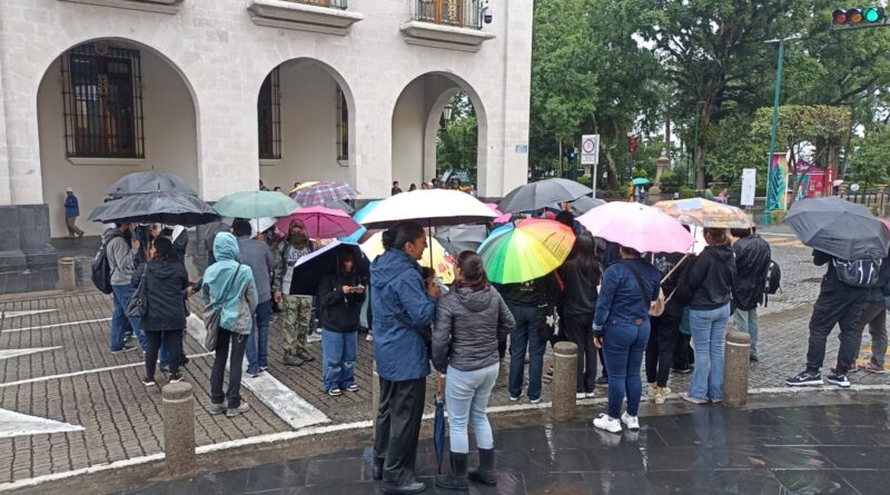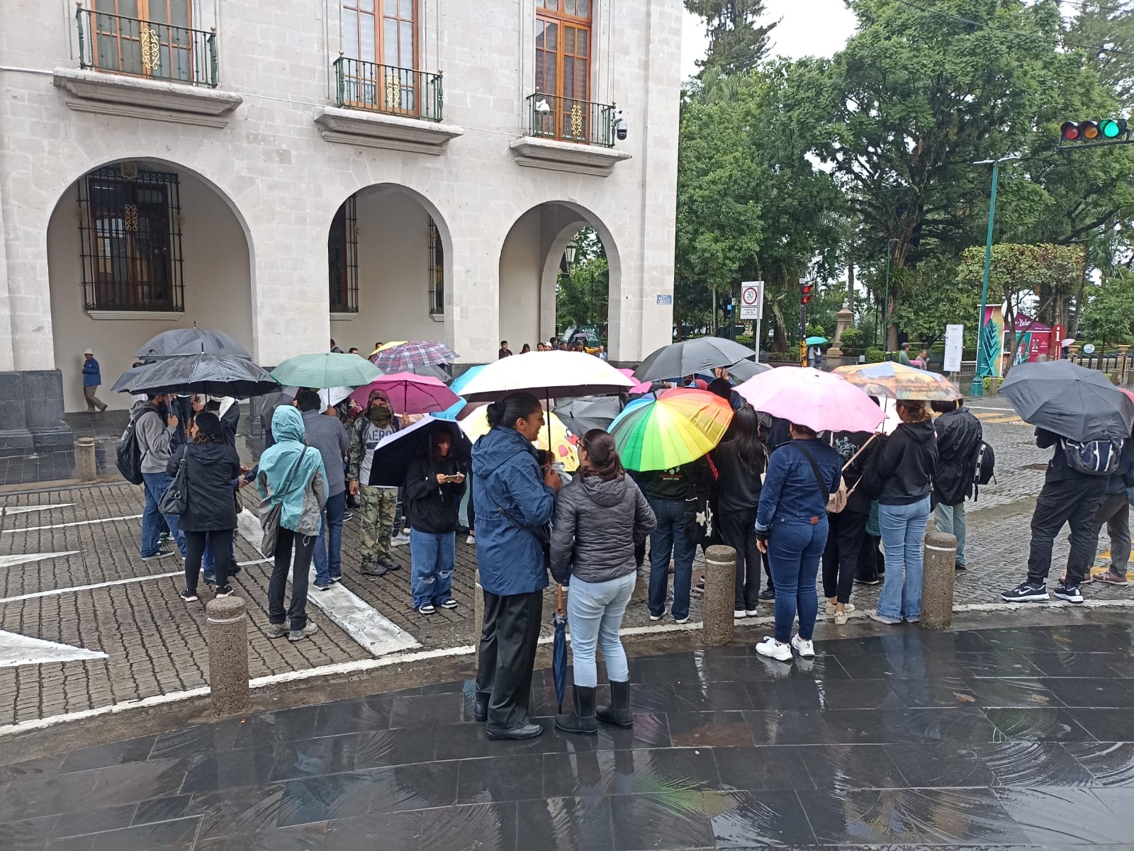 La pertinaz lluvia que azota la capital veracruzana desde temprana hora, no impidió que las y los alumnos manifestaran su desacuerdo con la medida tomada por la Dirección General del Bachillerato, al dejar sin empleo a quien dirigió los destinos de la prestigiosa centenaria institución de educación media superior.