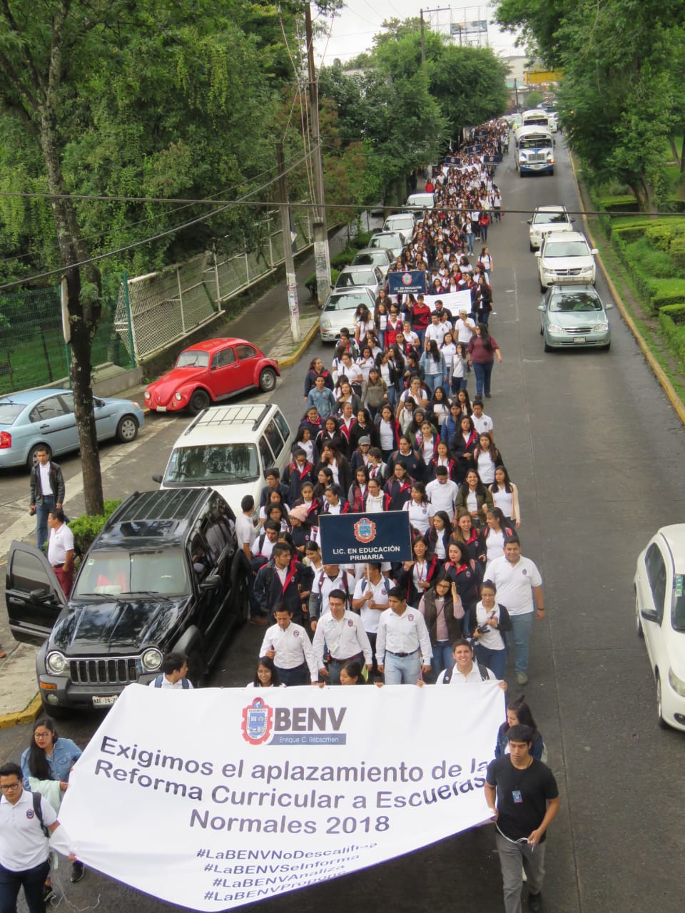 Para demandar el aplazamiento de la Implementación del documento Escuelas Normales: estrategias de fortalecimiento y transformación hasta el ciclo escolar 2019-2020, estudiantes y maestros de la Benemérita Escuela Normal Veracruzana realizaron una marcha, que concluyó con un plantón en la Plaza Sebastián Lerdo de Tejada de esta capital.