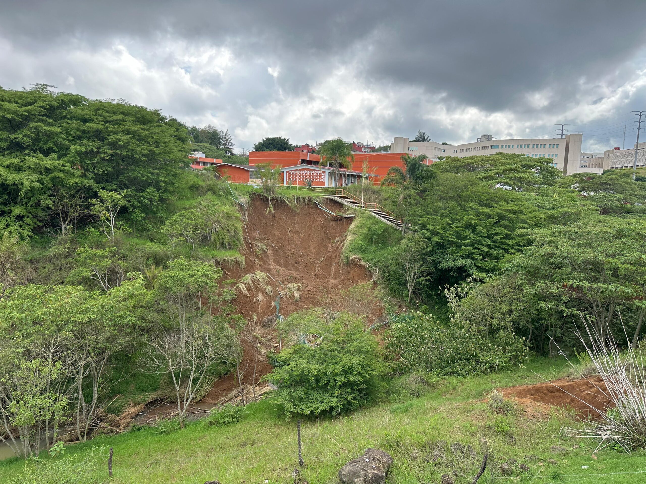 Desde septiembre del año pasado iniciaron los trabajos por parte de la Secretaría de Educación y Espacios Educativos; en enero ya no regresaron los normalistas a clases a este edificio, pues derrumbaron la escalera y quitaron la luz. Sin embargo, con el cambio de administración las obras ya no continuaron solo quitaron mucha tierra y dejaron así los trabajos; hasta la fecha no se han retomado el trabajo escolarizado normal, y siguen trabajando en línea. Como se nota en las imágenes, con los recientes aguaceros se derrumbó mucho más parte del terreno.