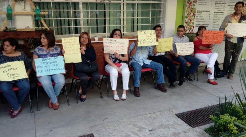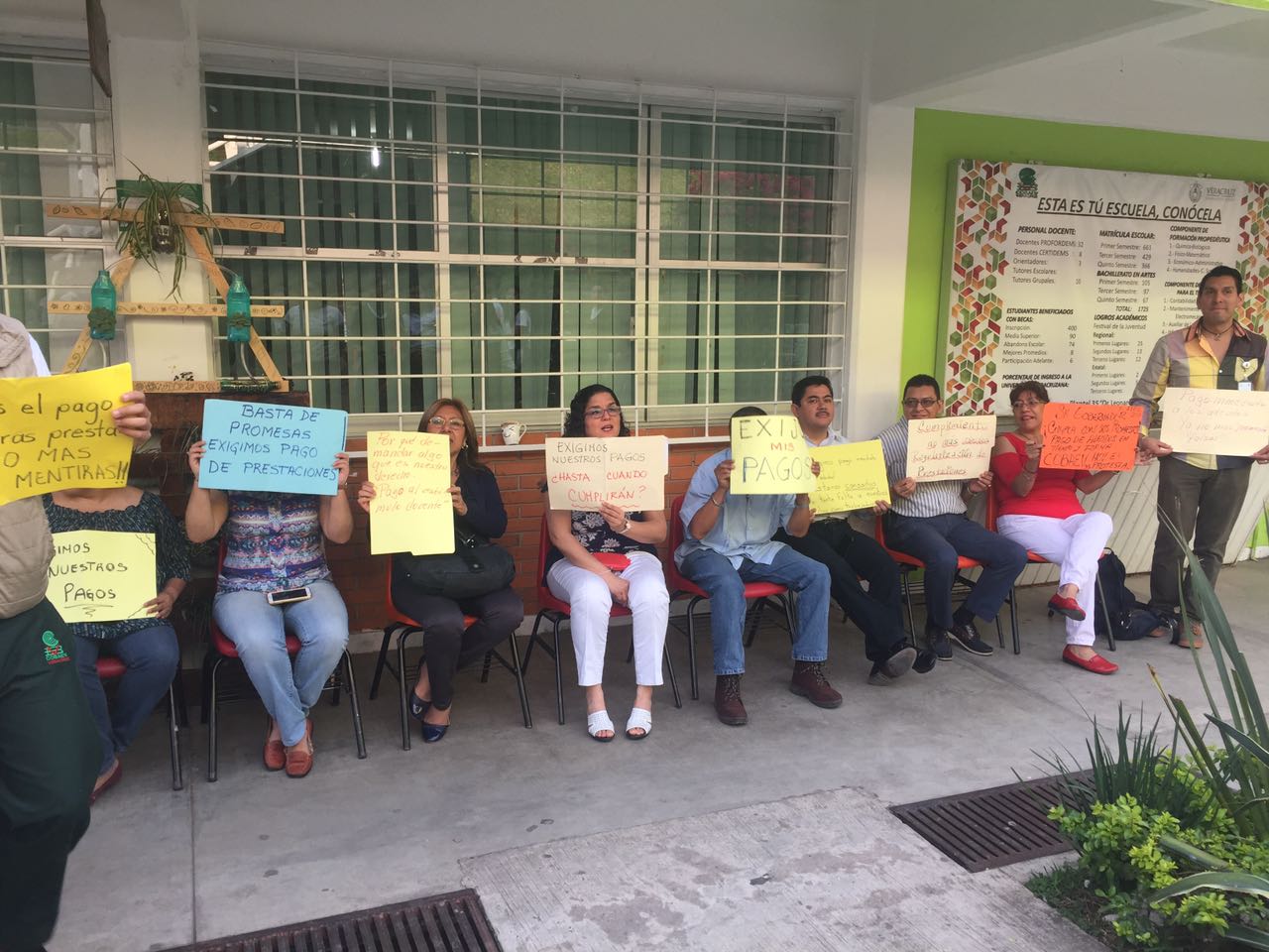 Maestros del COBAEV Plantel 35 de Xalapa exigen pago de adeudos