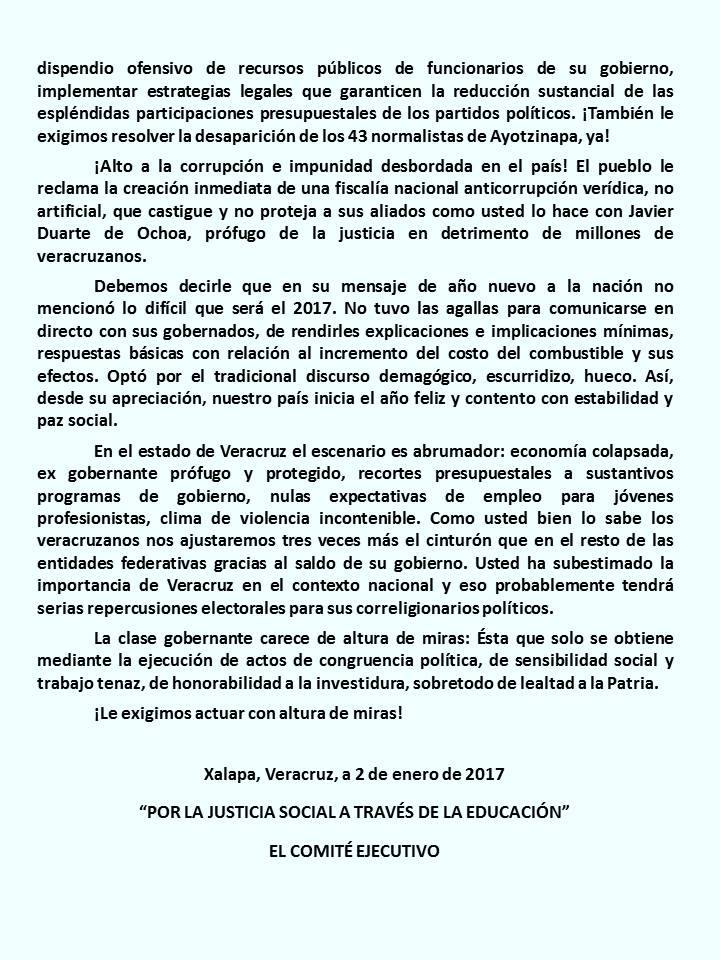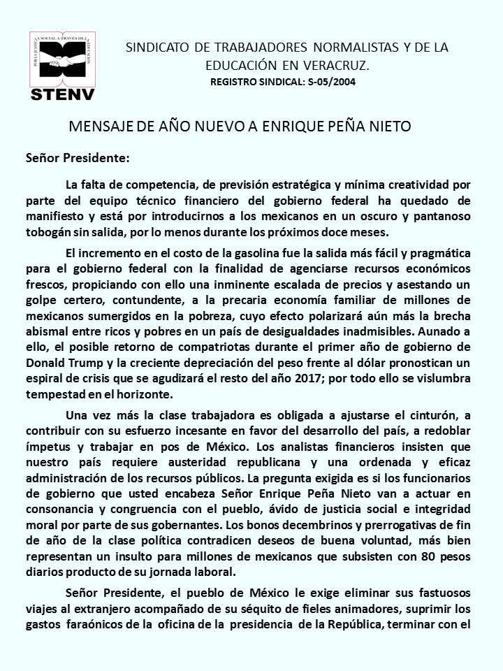 Mensaje de año nuevo a EPN: STENV