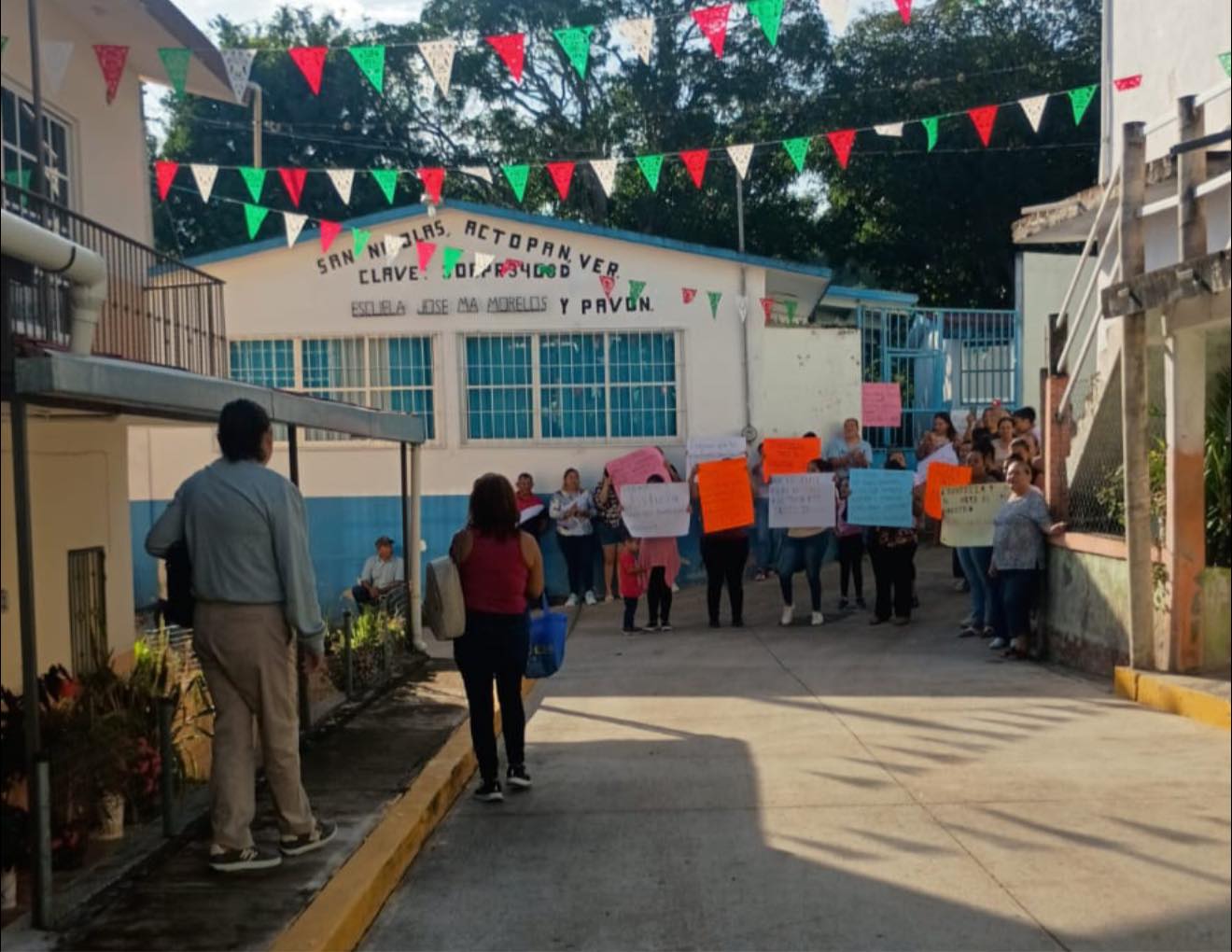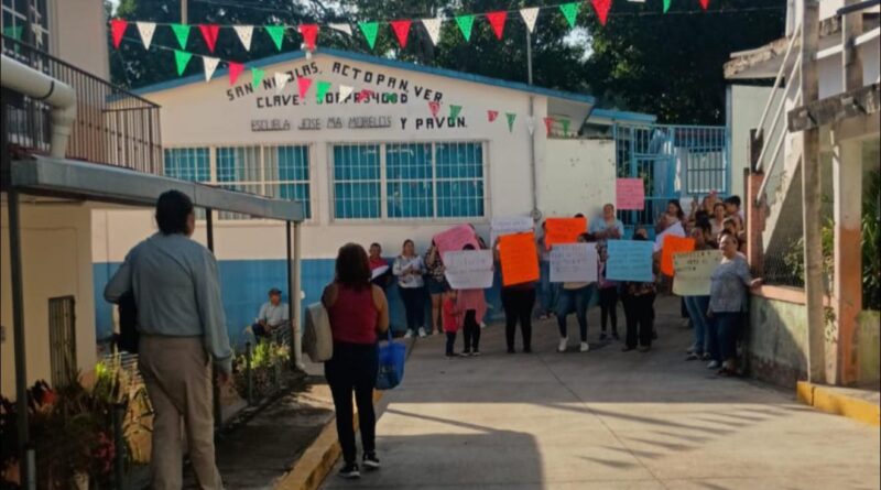 Actopan, Ver.,19-septiembre-2025.- Padres de familia de la comunidad de San Nicolás, en Actopan, cerraron la escuela primaria José María Morelos y Pavón en protesta por la destitución del profesor Marco Antonio Moreno Martínez, quien fue separado de su cargo tras una acusación de presunto maltrato infantil.