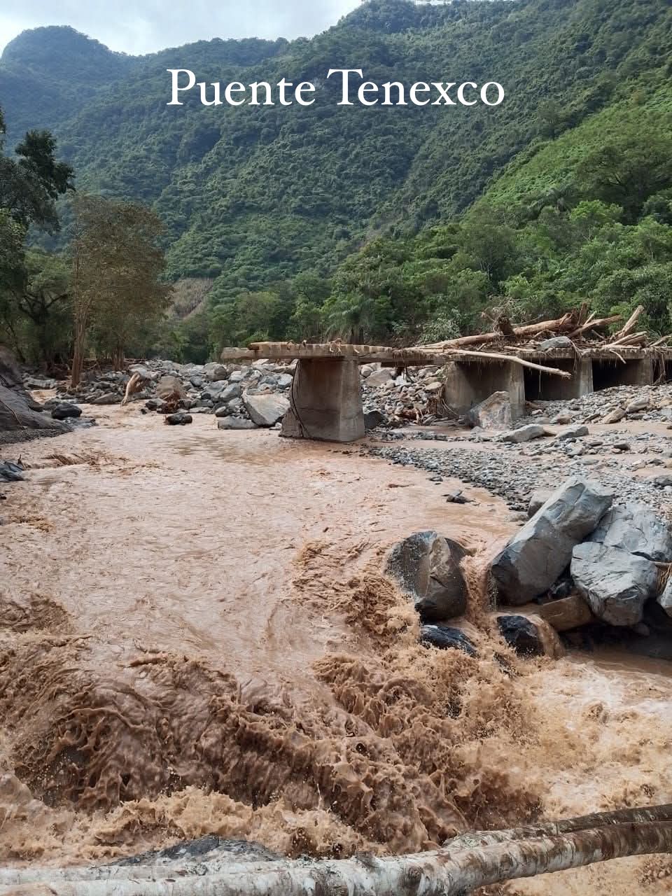 Aunado a lo anterior, se indica, los puentes ubicados en las comunidades de Chochotls y Tenexco, están totalmente destruidos, por el impacto de la fuente corriente que alcanzó el rio que pasa por esa región.