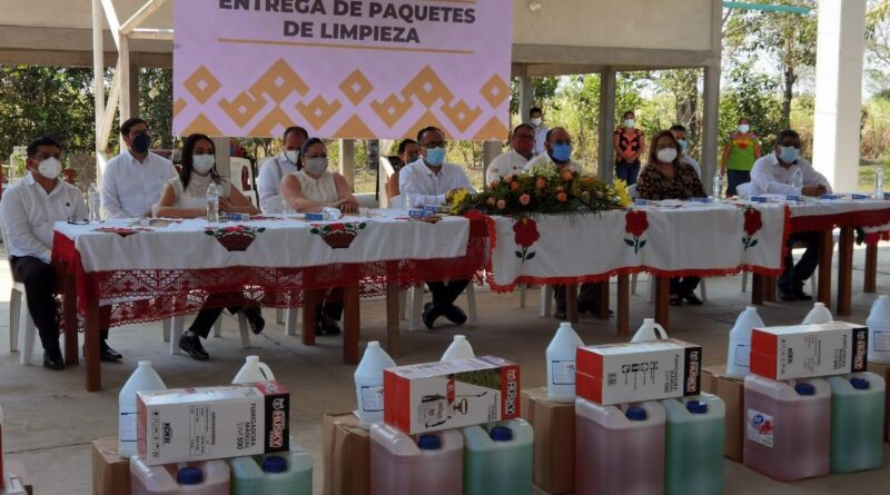 Cada uno con 20 litros de gel antibacterial, cinco galones de cloro, 20 litros de jabón para manos, una bomba sanitizante de cinco litros, un termómetro y un manual sanitario escolar COVID-19.