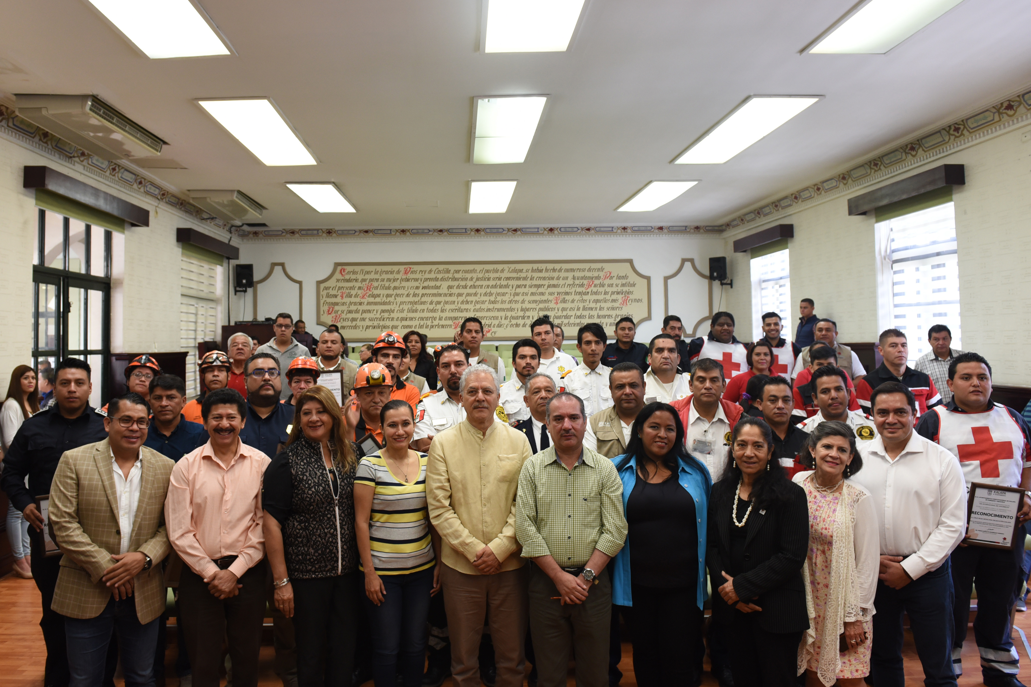 Se entregó diplomas a representantes de la Cruz Roja Delegación Xalapa, Cruz Ámbar, Cruz Verde, Escuadrón Nacional de Rescate, Brigada de Ayuda Prehospitalaria, Código Bravo, la Comisión Nacional de Emergencias, la Unidad Interna de Protección Civil de la Comisión Municipal de Agua Potable y Saneamiento (CMAS) y a personal de la Dirección de Protección Civil Municipal.