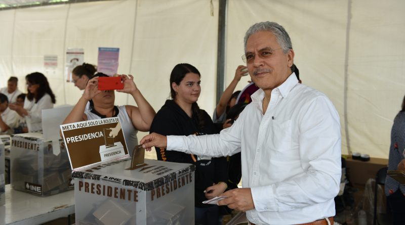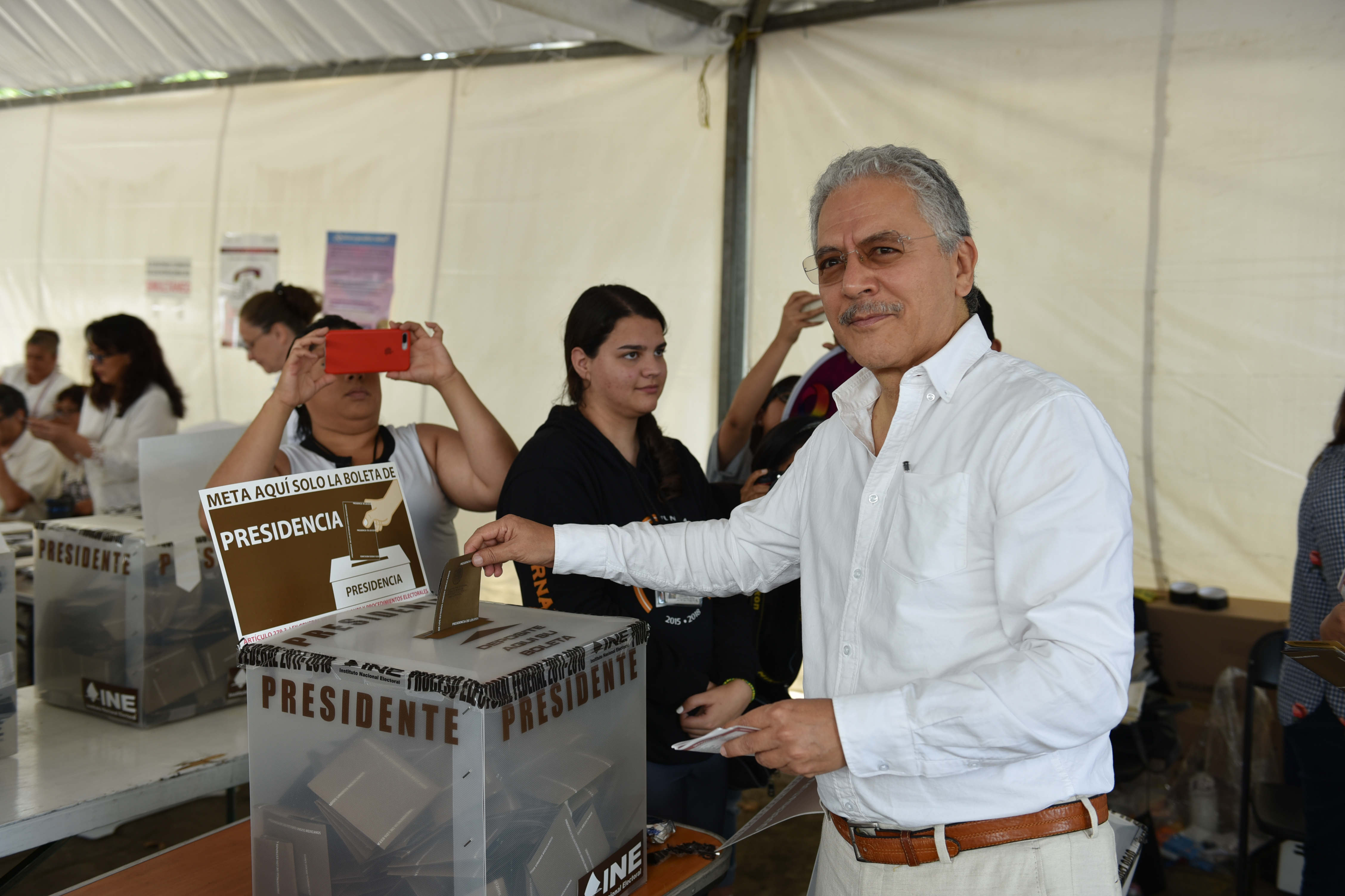 Xalapa, Ver.- El presidente municipal Hipólito Rodríguez Herrero acudió a la sección 2053, ubicada en el estacionamiento del Club Britania, en el fraccionamiento Ánimas, para emitir su voto este 1 de julio.
