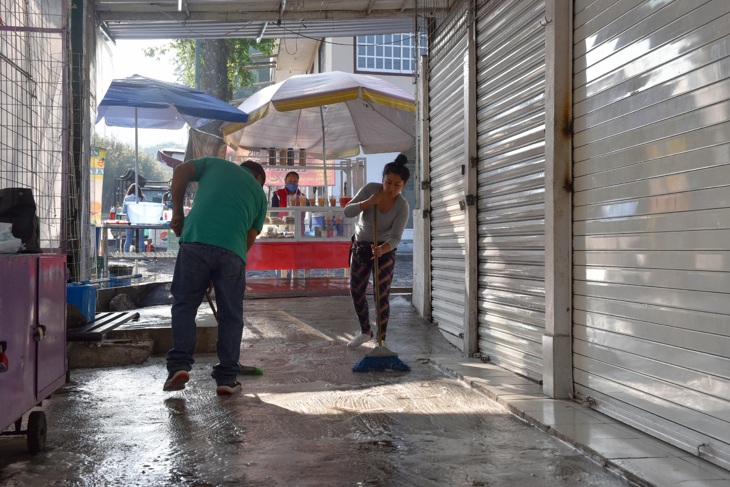 Más de 250 locatarios del mercado y tianguis Rendón realizaron actividades de limpieza y desinfección en estos espacios para darle certeza a los consumidores de que realizarán sus compras en un lugar higiénico y seguro.