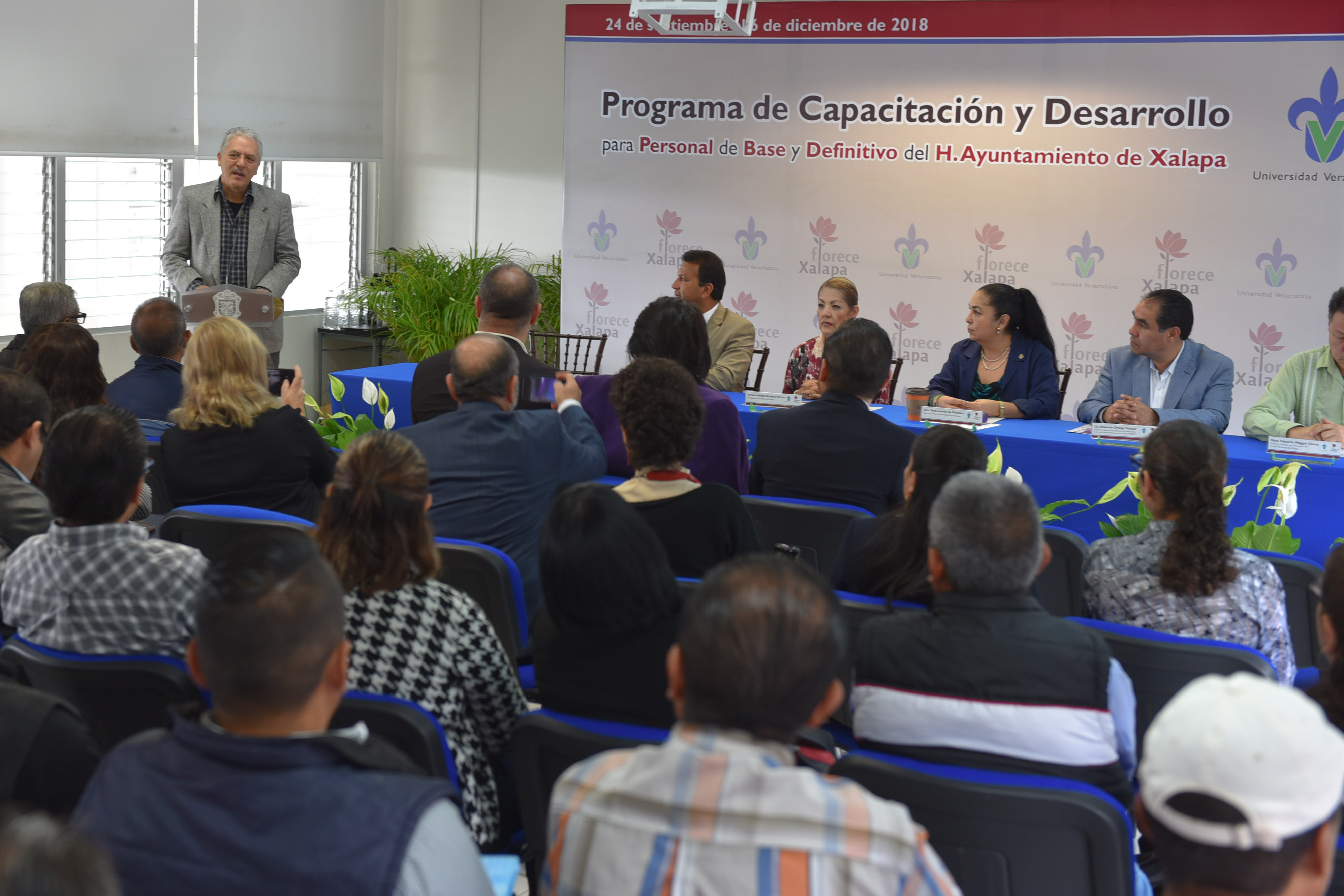 Xalapa, Ver.- Para mejorar el desempeño de los trabajadores del Gobierno Municipal, este lunes inició el Programa de Capacitación y Desarrollo para Personal de Base y Definitivo del Ayuntamiento de Xalapa, con el que 895 empleados podrán actualizar sus conocimientos en el uso de tecnología, prestación de servicios al público y relaciones humanas.