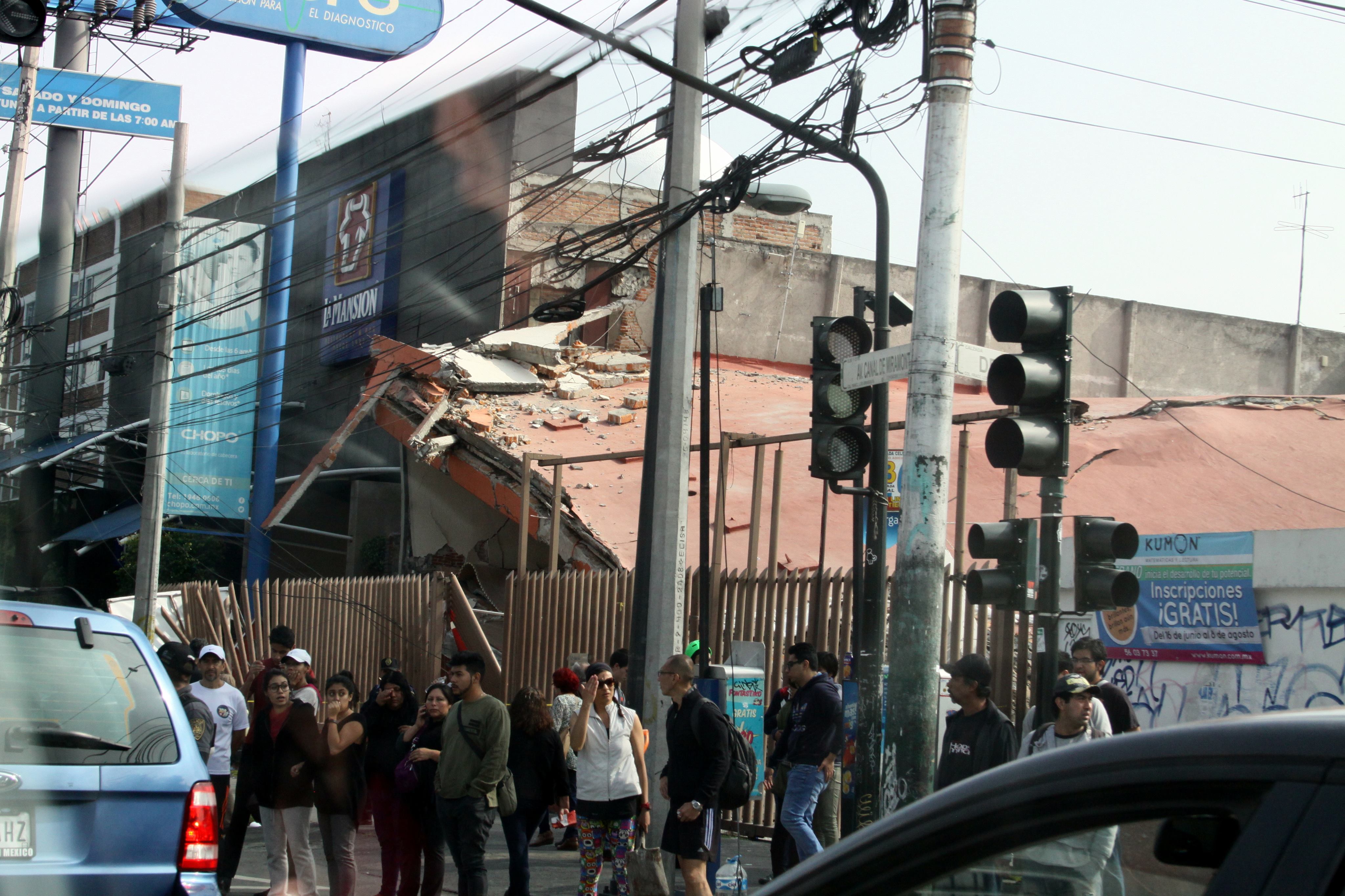 Hasta ese momento no me había dado cuenta de la realidad del caos, caminé en dirección a la Av. Miramontes y vi caer un edificio luego una gran nube de polvo y humo tapó el edificio todos gritaron. mi pensamiento voló cuando escuche a 2 señoras llorando y comenzaron a gritarle a la gente que estaban en una gasolinera que se quitarán de ahí, posteriormente me traslade a la calzada de las brujas a unas cuadras de Miramontes encontrando el Colegio Enrique C. Rébsamen derrumbado tomé algunas fotos y me comentaron que en la calzada de Tlalpan se derrumbó un edificio del multifamiliar, decido trasladarme a ese lugar encontrando el multifamiliar caído. Fue un completo caos; pude ver con mayor panorama el desastre, los vecinos sufrieron daños en sus viviendas, había bardas colapsadas y banquetas rotas, Me estremeció ver a la gente pasándose los ladrillos de los edificios derribados para poder rescatar a la persona atrapada, había lugares donde ya no aceptaban voluntarios.