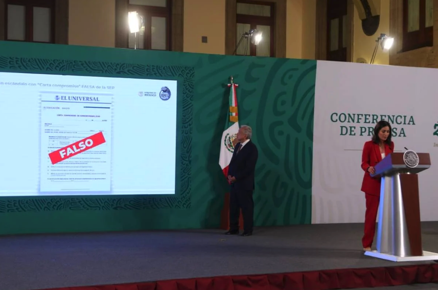 El falso desmentido de Palacio Nacional ocurre un día después de que el propio presidente López Obrador criticara a la Secretaría de Educación Pública de no haberle consultado la inclusión de la carta entre las 10 acciones para el regreso a clases presenciales y decretó que no sería obligatoria.