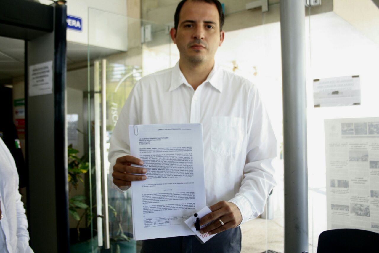 Para tal fin, acudió este lunes a la Fiscalía General del Estado en donde presentó dos denuncias, una por favorecer con un contrato a una empresa por 36.9 millones de pesos y la otra por abuso de empresa fantasma para la posible adjudicación directa de diversos contratos de la Comisión Municipal de Agua Potable.