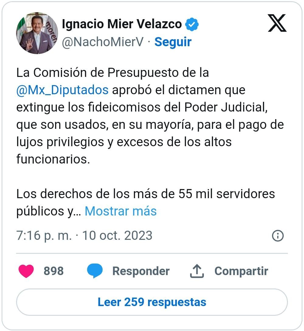 En su conferencia de prensa matutina, señaló que el eventual corte del fideicomisos sólo afectará a las y los ministros de más alto rango, y no a las y los trabajadores de todo el Poder Judicial.