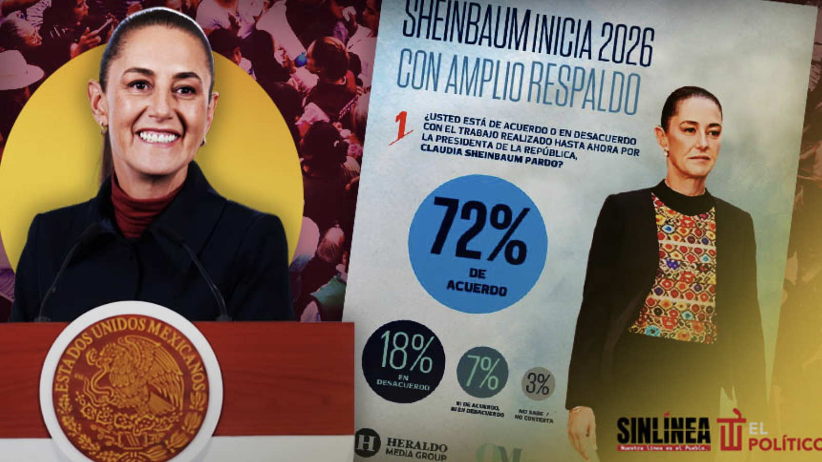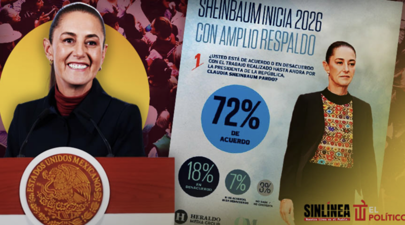 Claudia Sheinbaum inicia 2026 con amplio respaldo: 72% de los mexicanos la aprueba