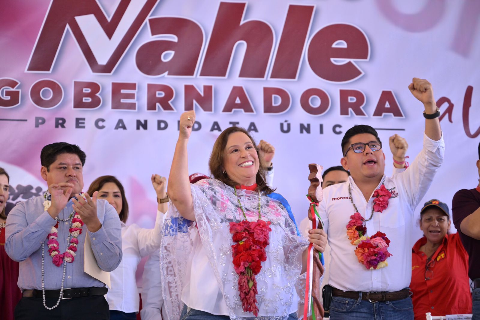 “Ustedes han elegido a su alcalde, a quien le agradezco que nos reciba y decirle a nuestro alcalde que es bienvenido, que es bienvenido, en Morena, nuestro movimiento es de puertas abiertas, nuestro movimiento no tiene dueño, nuestro movimiento es un instrumento al servicio del pueblo y quien quiera sumar para la transformación y seguir con esta política es bienvenido y es compañero, bienvenido alcalde”, apuntó Nahle García.