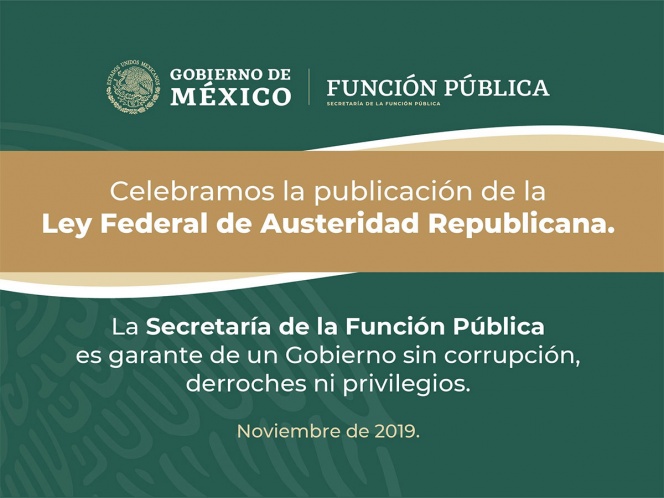 La Secretaría de la Función Pública publicó en el Diario Oficial de la Federación el decreto por el que se expide la Ley Federal de Austeridad Republicana.