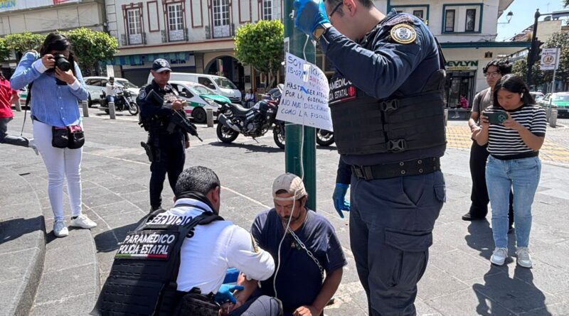 Y es que por el fuerte sol que se registró ayer (martes) en esta capital y permanecer encadenado sin probar ni alimentos ni líquidos, la mañana de este miércoles sufrió un desvanecimiento, que obligó a las autoridades estatales a atenderlo de inmediato, canalizando lo vía intravenosa para evitar una fatal consecuencia.