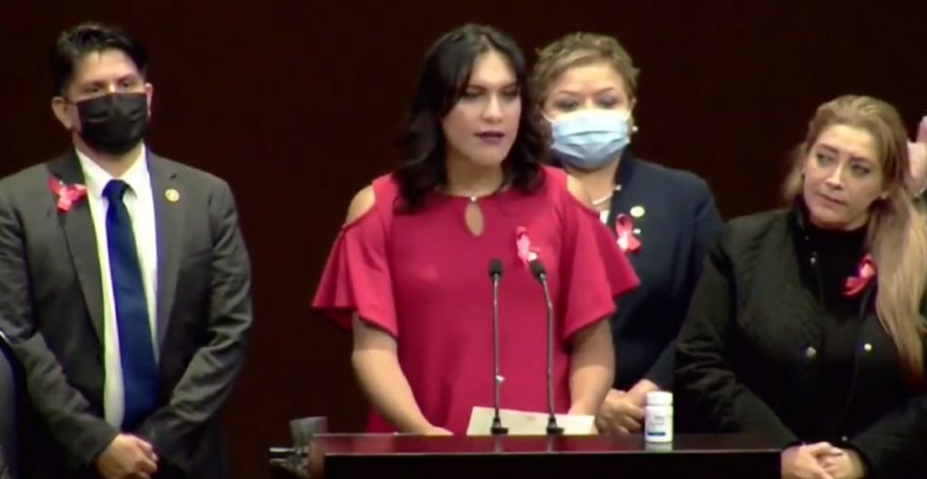 María Clemente fue una de las legisladoras que subió al estrado luego de que el diputado Gabriel Quadri se refiriera a la diputada Salma Luévano como “señor”, eliminando así su identidad transgénero.
