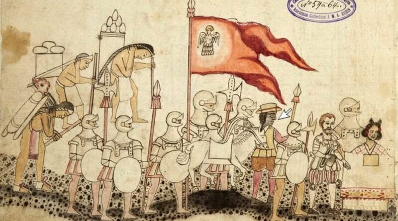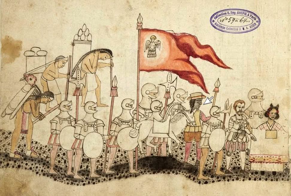 IMAGEN DE PORTADA: señalización de un conquistador africano en la lamina XXIII del Códice Azcatitlan. Donde se muestra al ejército con el capitán-general Hernán Cortés, doña Marina y posiblemente Juan Garrido al frente (FUENTE: Biblioteca Nacional de Francia).