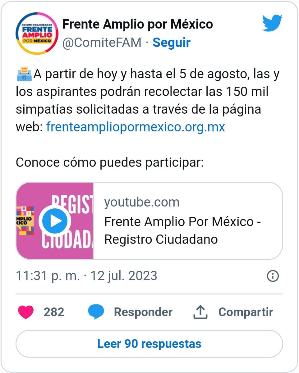 El Frente Amplio por México, conformado por el PAN, PRI y PRD, lanzó ayer en la noche su plataforma digital para que sus 13 aspirantes a la candidatura presidencia recaben 150 mil firmas, pero esta presenta problemas técnicos.