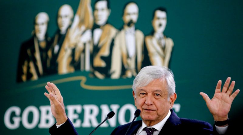 Mexican President Andrés Manuel López Obrador speaks during his morning press conference at the facilities of the Air College in Zapopan, Jalisco state, Mexico on April 5, 2019. – Lopez Obrador announced that next week he will appoint an active military as chief of National Guar7d. (Photo by Ulises Ruiz / AFP) (Photo credit should read ULISES RUIZ/AFP/Getty Images)