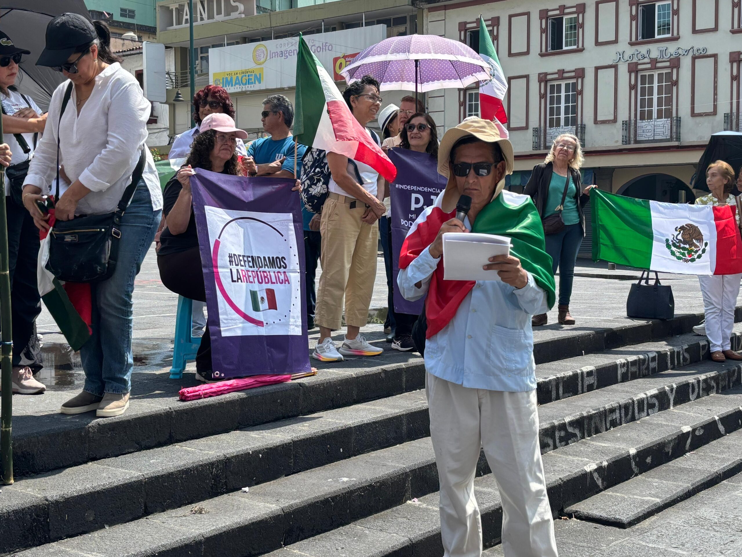 Irineo Pérez Melo.- Un grupo de ciudadanos xalapeños se manifestaron en la Plaza Sebastián Lerdo de Tejada, para demandar al Tribunal Electoral de la Federación la nulidad de la elección de jueces, magistrados y ministros efectuada el pasado 1 de junio. Esta acción se realizó de manera simultánea en todo el país.