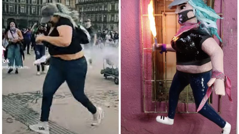 “La Reinota”, la joven que en la marcha del pasado 8 de marzo regresó un cartucho de gas que policías detrás de las vallas de Palacio Nacional aventaron para dispersar a las manifestantes, se deslindó de la Piñatería Ramírez, que creó una piñata con su imagen, y los acusó de machistas.