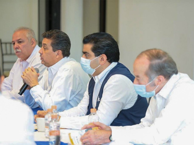 En una de las fotografías, al lado derecho del gobernador aparece el secretario General de Gobierno, Cesar Agusto Verástegui Ostos; Romulo Garza, secretario de Bienestar Social, mientras que a su izquierda se encuentra David Cerda Zúñiga, jefe de Gabinete y el asesor Jurídico del estado, Aberlardo Perales Meléndez.