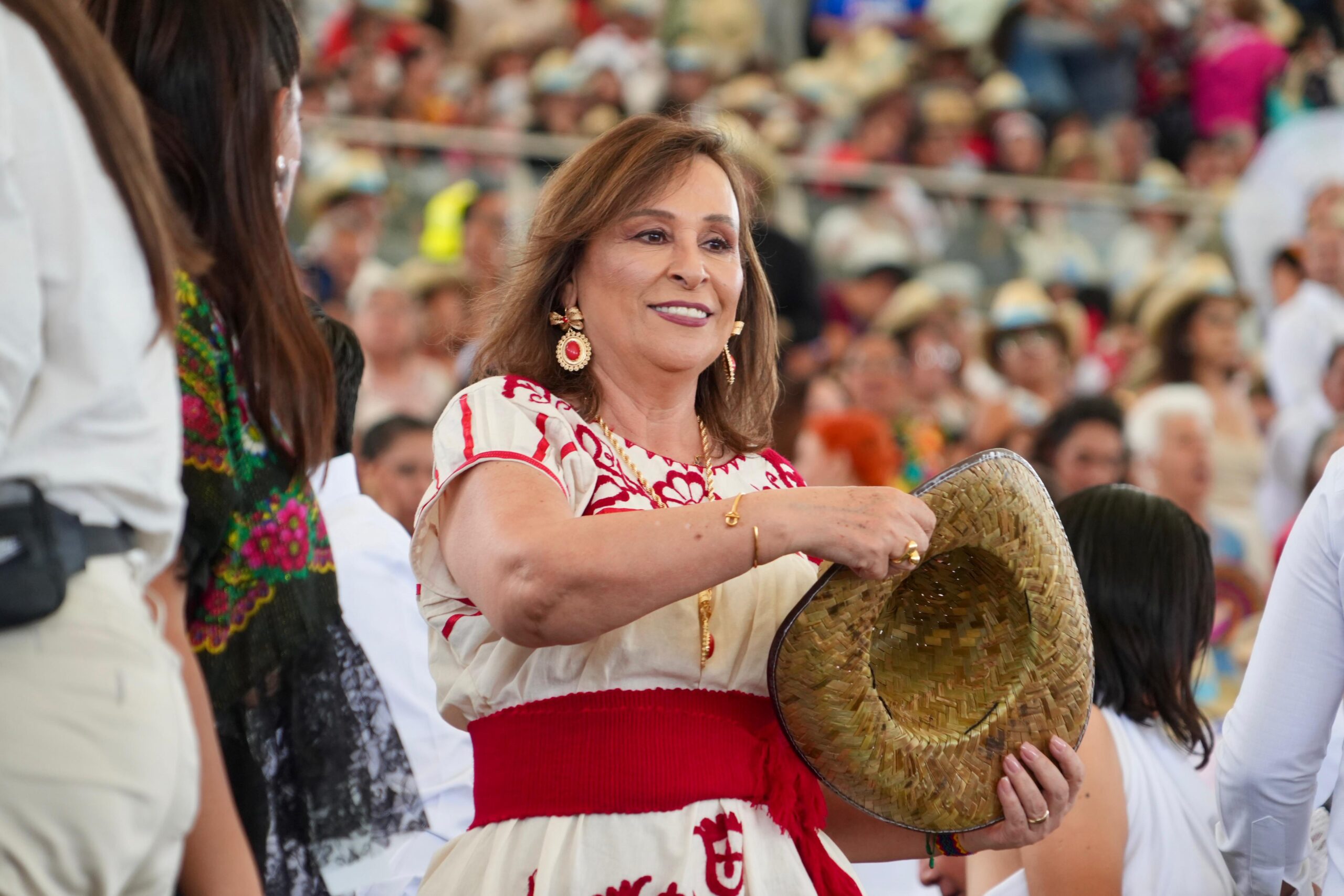 Oaxaca, Oax., lunes 21 de julio de 2025. – La gobernadora Rocío Nahle García, asistió como invitada especial a la tradicional ceremonia matutina del Lunes del Cerro, celebrada en el Auditorio de la Guelaguetza, donde acompañó al gobernador de Oaxaca, Salomón Jara Cruz, y a la presidenta honoraria del DIF estatal, Irma Bolaños Quijano, en la máxima fiesta de interculturalidad de América Latina.