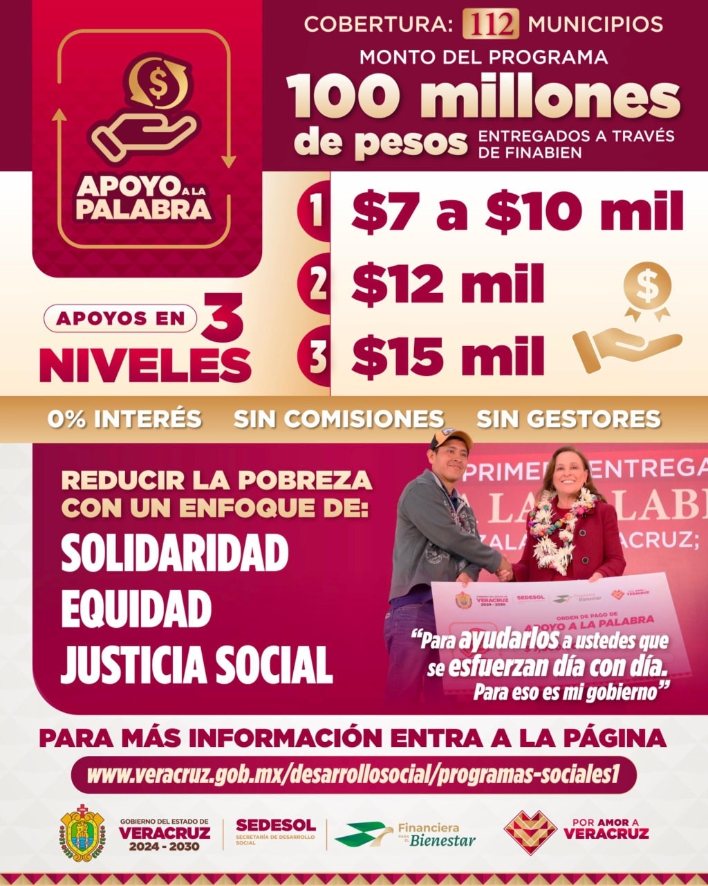 Con el programa Apoyo a la Palabra, respaldamos a las y los veracruzanos que son micro emprendedores, este año se promueve en 112 municipios este programa 🙌