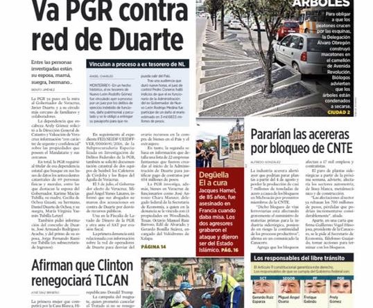 Va PGR contra red de Javier Duarte; 69 en la lista: Reforma