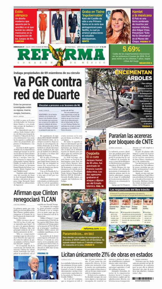 De acuerdo con el periódico, la PGR pidió a la Dirección General de Catastro y Valuación de Veracruz información “con carácter de urgente y confidencial” sobre propiedades del mandatario estatal, y también los antecedentes catastrales de 69 personas físicas y morales. Entre ellas, la esposa de Duarte, Karime Macías Tubilla, y su hermano, Daniel Duarte de Ochoa.