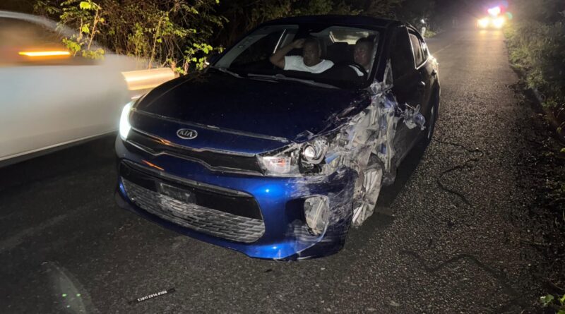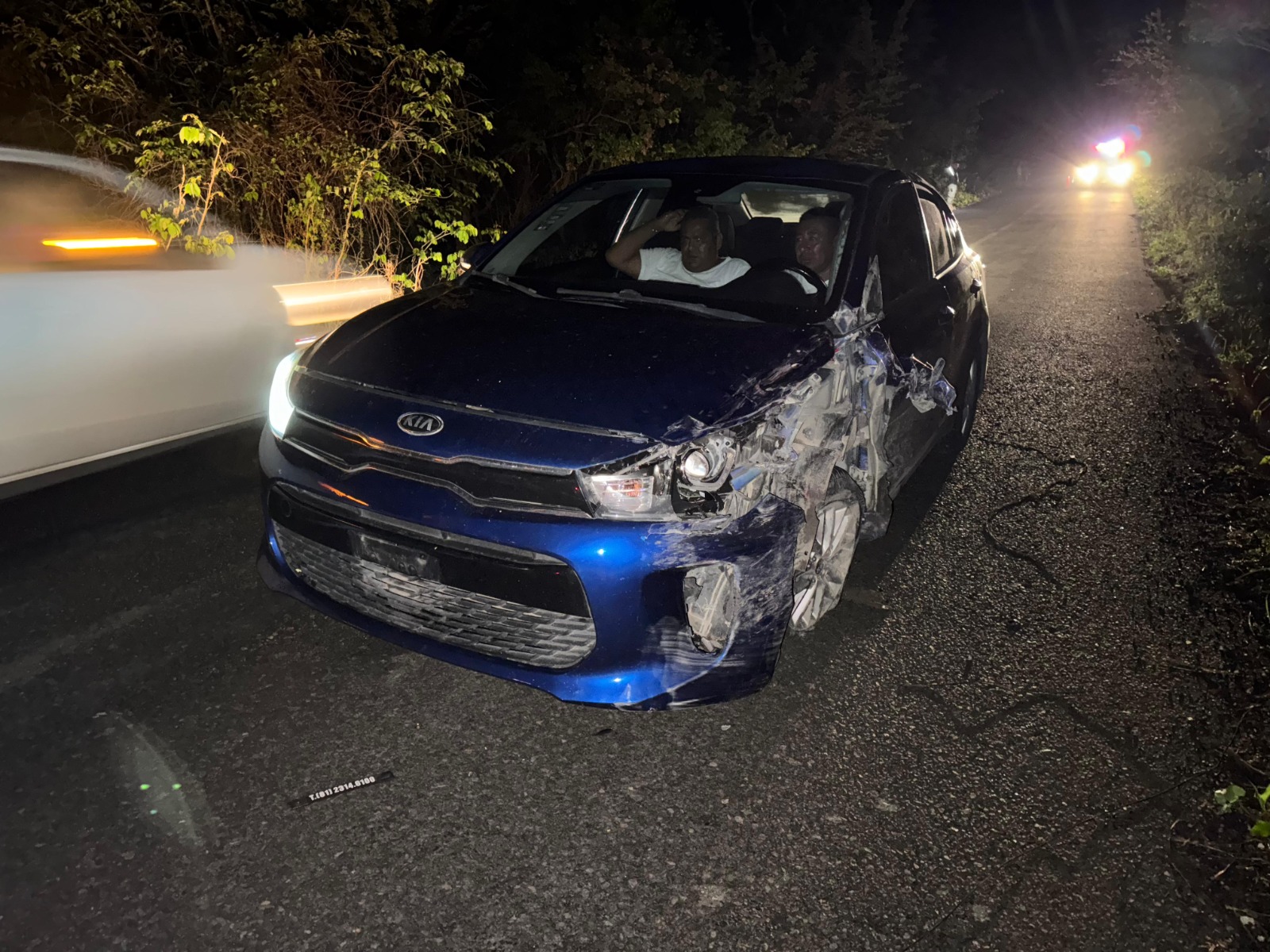 Irineo Pérez Melo.- Elementos de la Dirección General de Tránsito del Estado ocasionaron un accidente automovilístico en el tramo carretero Tantoyuca-Ixcatepec, a la altura de la localidad Lindero Aguacate, cuando transitaban en un automóvil particular marca KIA de color azul.