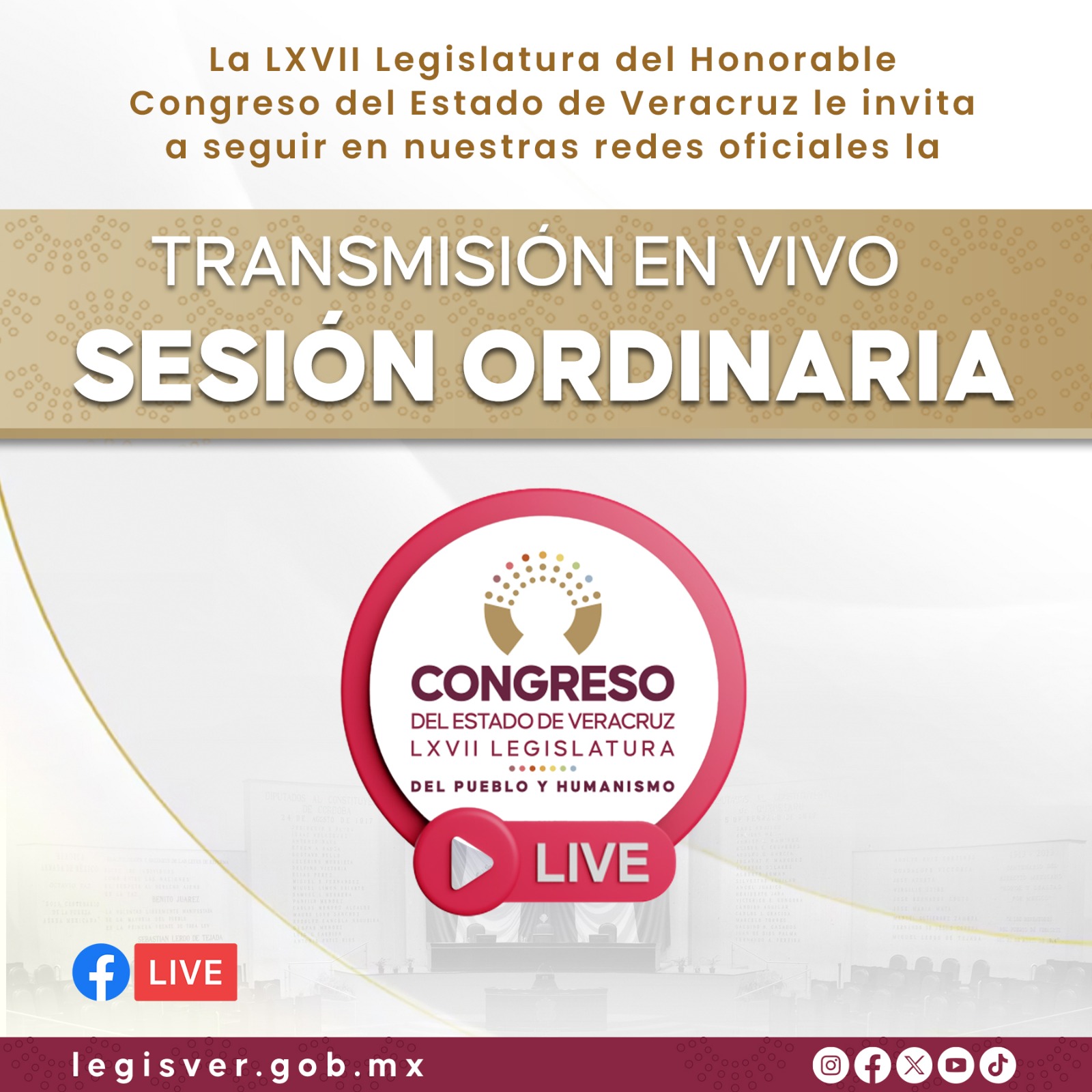 Banner Legislación Municipios Politica Veracruz (VIDEO) Transmisión en vivo del H. Congreso del Estado de Veracruz | Jueves 3 de julio de 2025 3 julio, 2025 Sin Recreo VER VIDEO: https://m.youtube.com/@CongresoVeracruz Transmisión en vivo del H. Congreso del Estado de Veracruz | Jueves 3 de julio de 2025